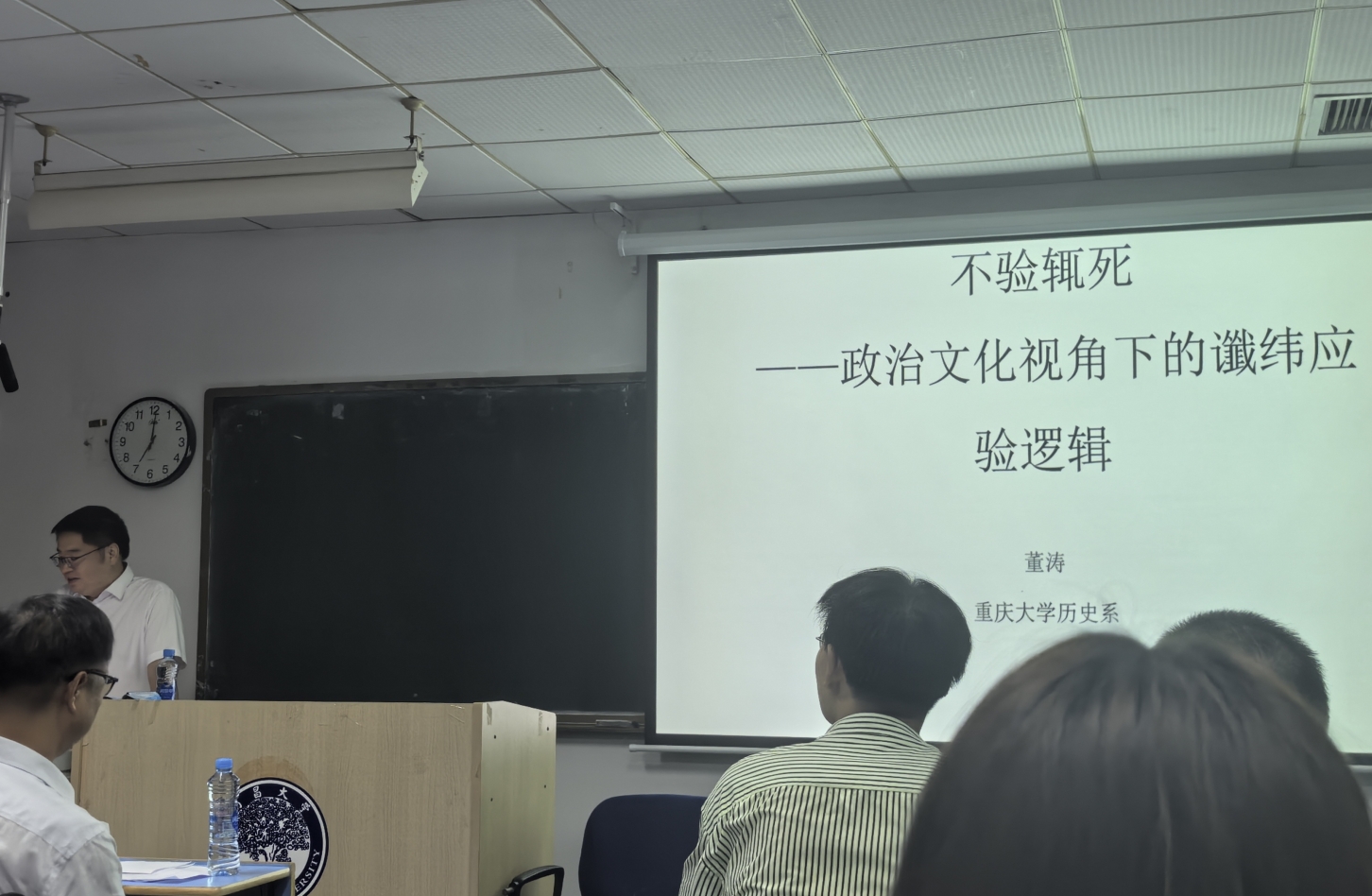 应我院邀请,重庆大学历史系董涛副教授于95日(周)晚上7:00-9:00,在人文楼A130教室开展了一场题为“不验辄死:政治文化视角下的谶纬应验逻辑”的学术讲座。本次讲座由国学院张宜斌副教授主持,周博、雷达等教师以及国学院全体同学参加。